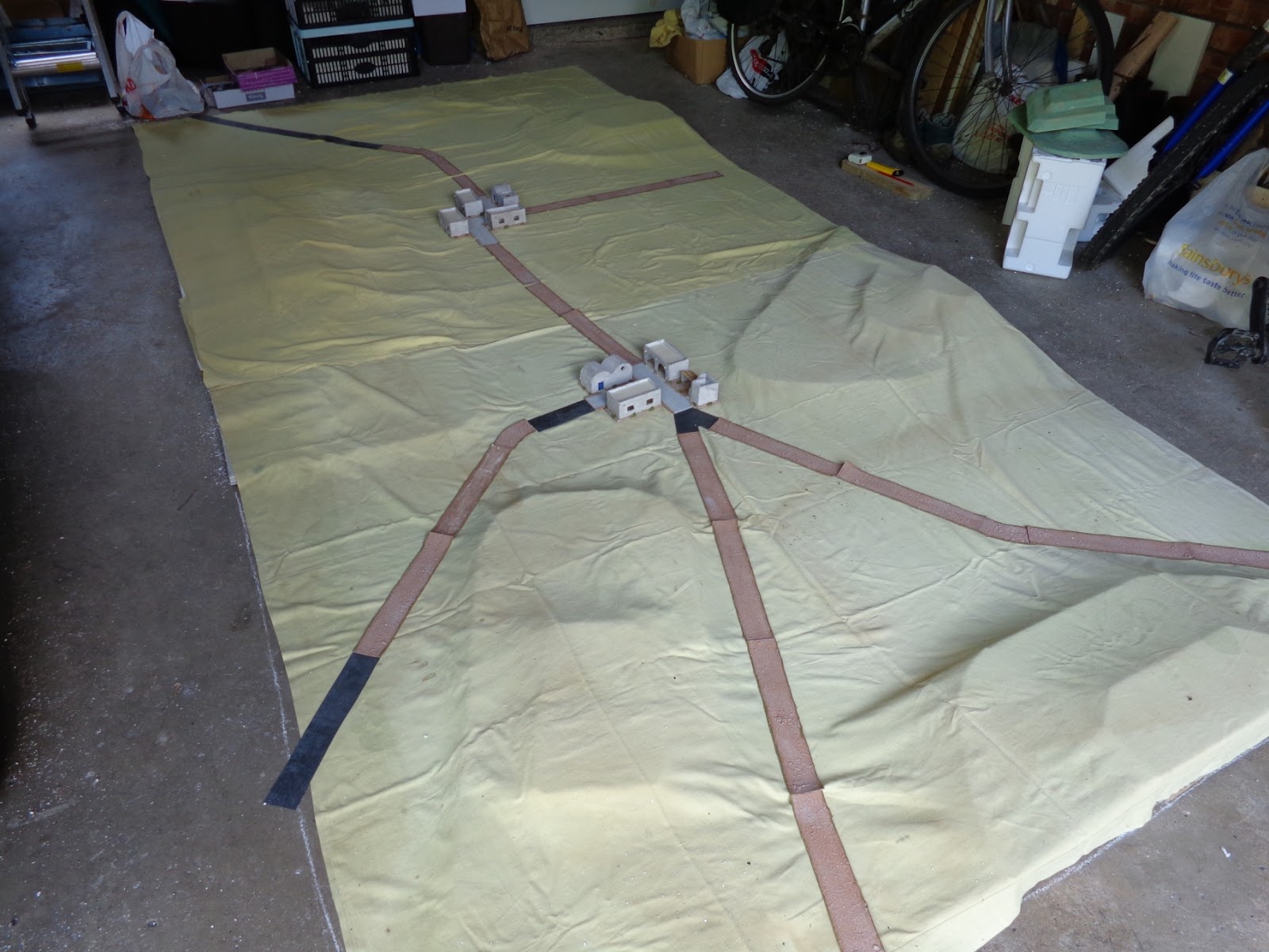 The roads are now finished so here's an impression of the finished table. On the day I will need to add more lines of stones, which define crest line and therefore limits line of sight.